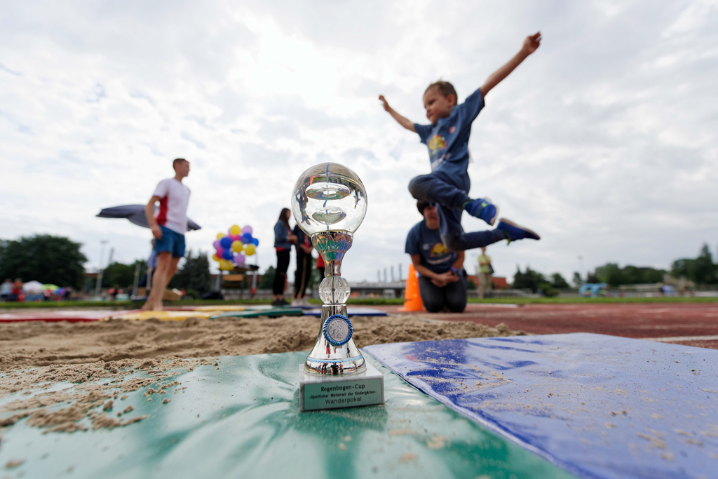 Im Fokus steht der Spaß an der Bewegung und am fairen Wettkampf. Die kleinen Athleten messen sich im 30m-Lauf, Ballwurf und Weitsprung, bevor der gemeinsame Hindernislauf – der Regenbogen-Lauf – den krönenden Abschluss bildet. Am Ende entscheidet sich, welche Kita den Wanderpokal für ein Jahr mit nach Hause nehmen darf.